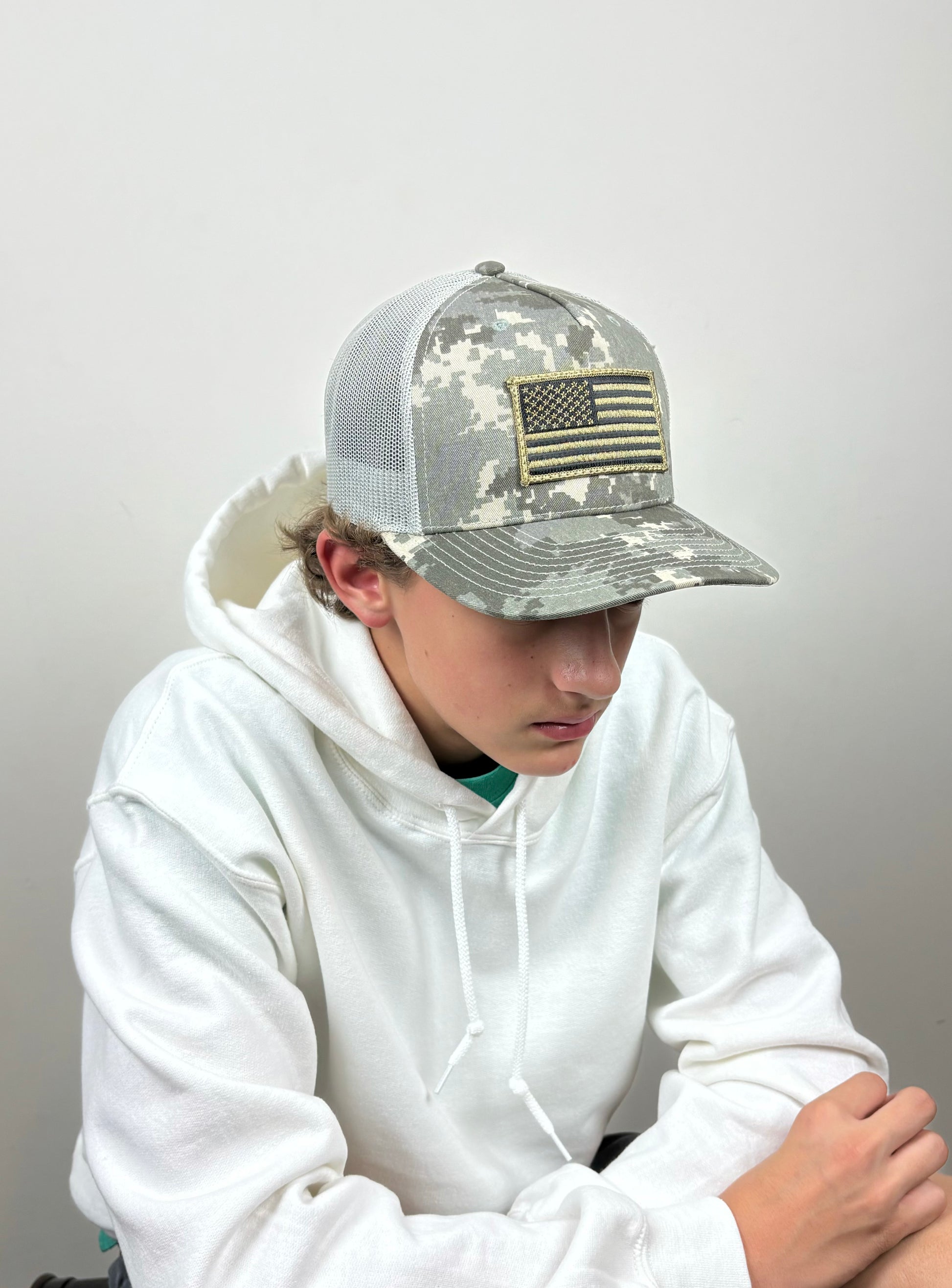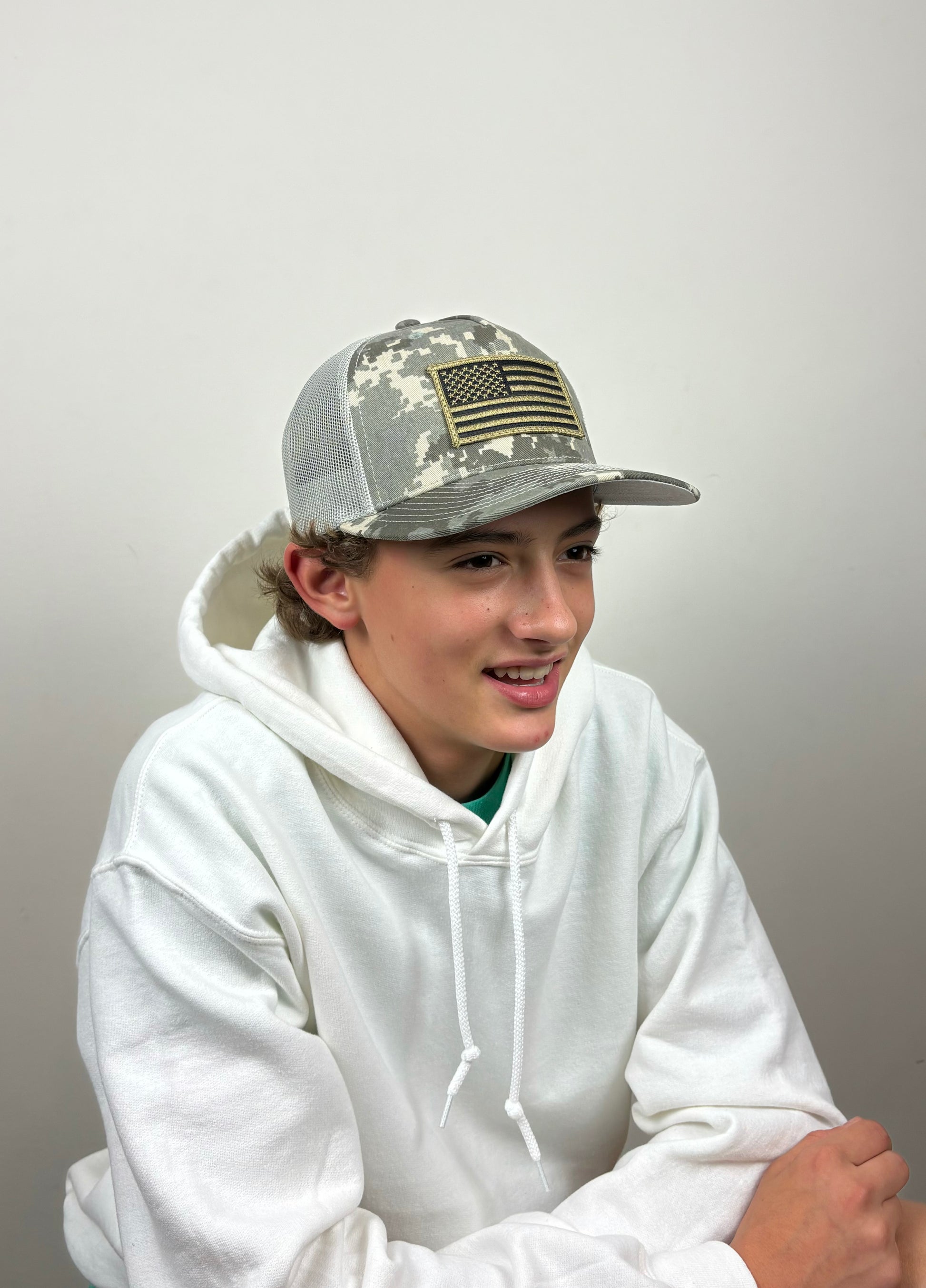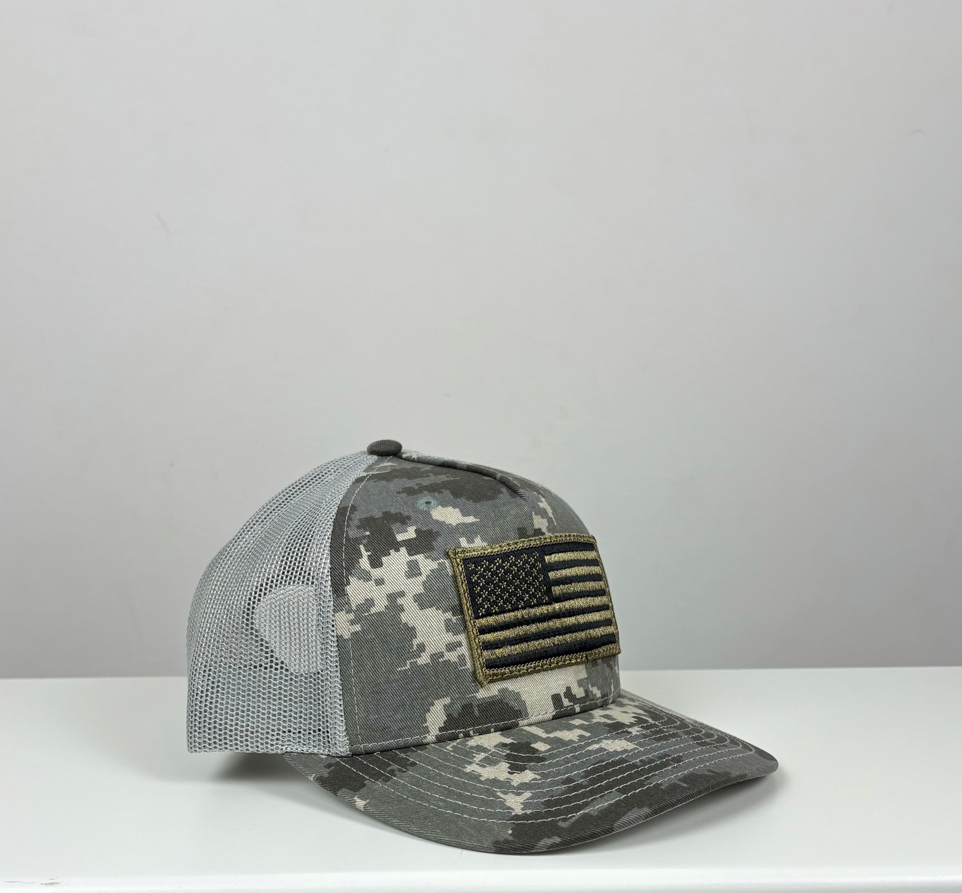 A patriotic trucker snapback for real Americans, with a high quality American flag patch.